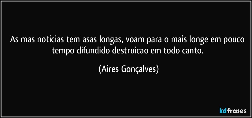 As mas noticias tem asas longas, voam para o mais longe em pouco tempo difundido destruicao em todo canto.