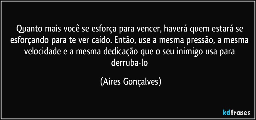 Quanto mais você se esforça para vencer, haverá quem estará se esforçando para te ver caído. Então, use a mesma pressão, a mesma velocidade e a mesma dedicação que o seu inimigo usa para derruba-lo