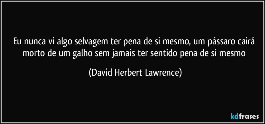 Eu nunca vi algo selvagem ter pena de si mesmo, um pássaro cairá morto de um galho sem jamais ter sentido pena de si mesmo