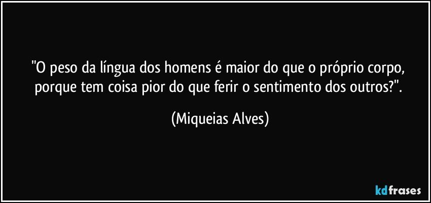 O peso da língua dos homens é maior do que o próprio corpo, porque tem coisa pior do que ferir o sentimento dos outros?.
