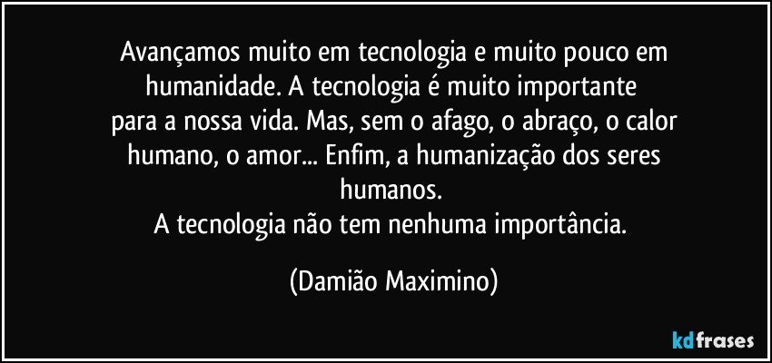 para a nossa vida. Mas, sem o afago, o abraço, o calor