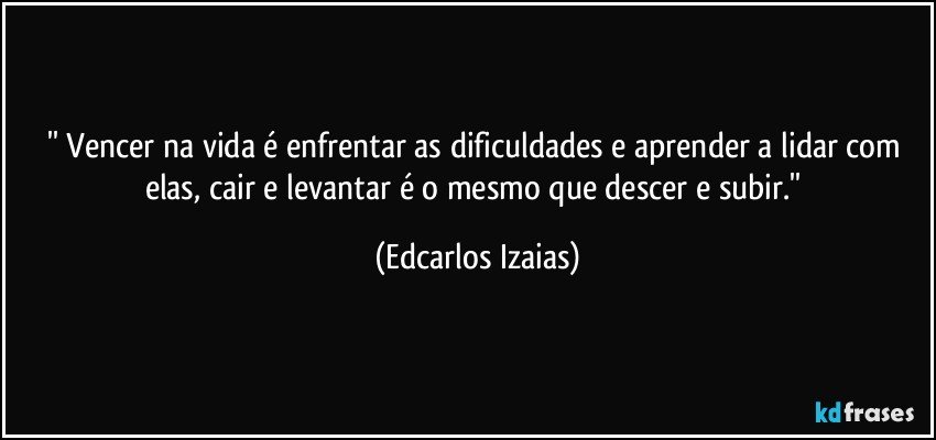 ' Vencer na vida é enfrentar as dificuldades e aprender a lidar com elas, cair e levantar é o mesmo que descer e subir.'