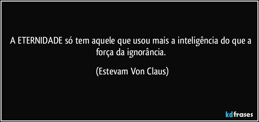 A ETERNIDADE só tem aquele que usou mais a inteligência do que a força da ignorância.
