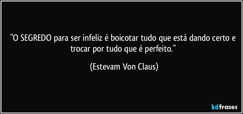 O SEGREDO para ser infeliz é boicotar tudo que está dando certo e trocar por tudo que é perfeito..