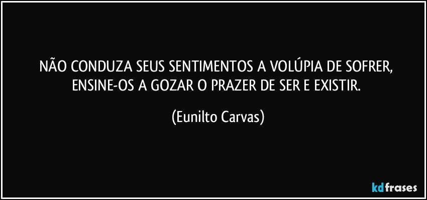 Não conduza seus sentimentos a volúpia de sofrer, ensine-os a gozar o prazer de ser e existir.
