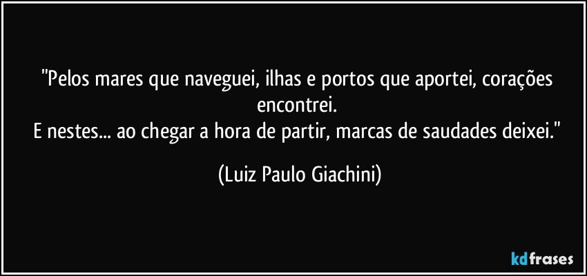 Pelos mares que naveguei, ilhas e portos que aportei, corações encontrei.
