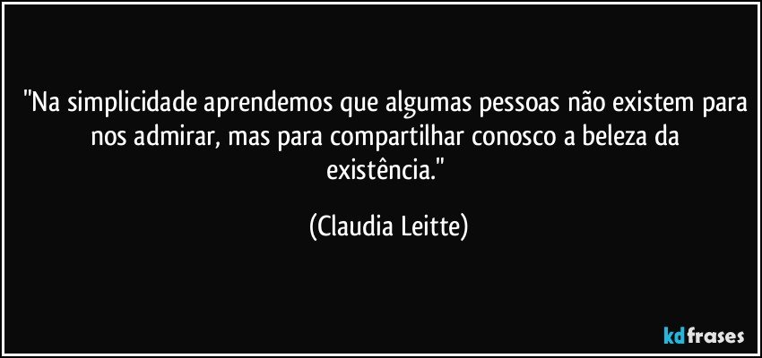 Na simplicidade aprendemos que algumas pessoas não existem para nos admirar, mas para compartilhar conosco a beleza da