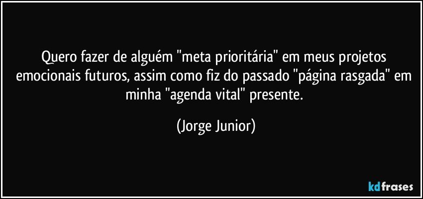 Quero fazer de alguém "meta prioritária" em meus projetos emocionais futuros, assim como fiz do passado "página rasgada" em minha "agenda vital" presente.