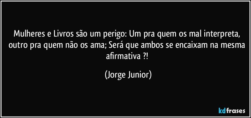 Mulheres e Livros são um perigo: Um pra quem os mal interpreta, outro pra quem não os ama; Será que ambos se encaixam na mesma afirmativa ?!