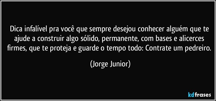 Dica infalível pra você que sempre desejou conhecer alguém que te ajude a construir algo sólido, permanente, com bases e alicerces firmes, que te proteja e guarde o tempo todo: Contrate um pedreiro.