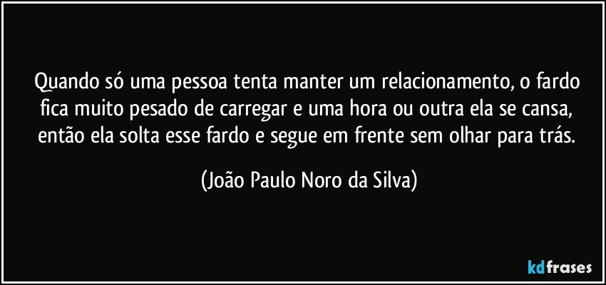 Quando só uma pessoa tenta manter um relacionamento, o fardo fica muito pesado de carregar e uma hora ou outra ela se cansa, então ela solta esse fardo e segue em frente sem olhar para trás.