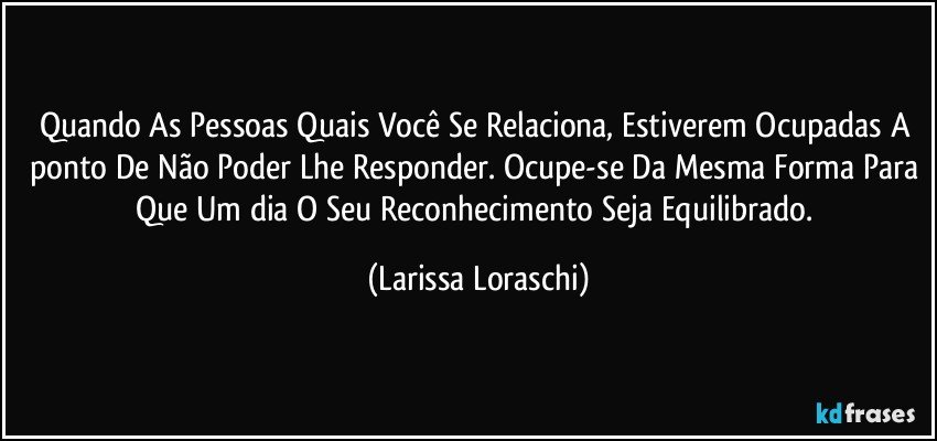 Quando As Pessoas Quais Você Se Relaciona, Estiverem Ocupadas A ponto De Não Poder Lhe Responder. Ocupe-se Da Mesma Forma Para Que Um dia O Seu Reconhecimento Seja Equilibrado.