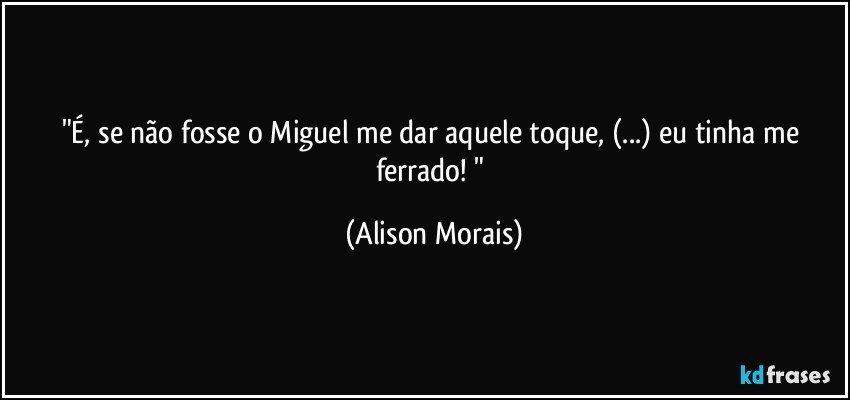 É, se não fosse o Miguel me dar aquele toque, (...) eu tinha me ferrado! .