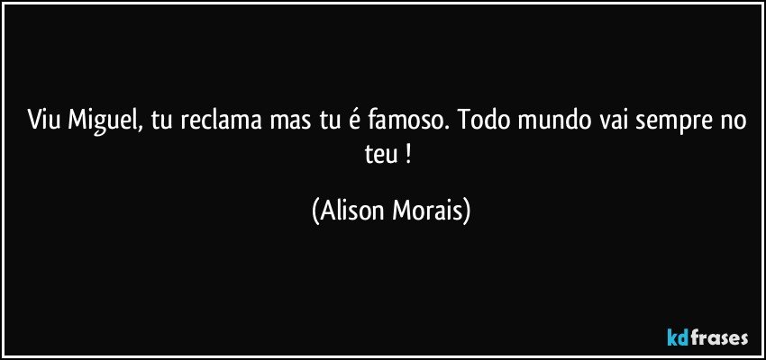 Viu Miguel, tu reclama mas tu é famoso. Todo mundo vai sempre no teu !