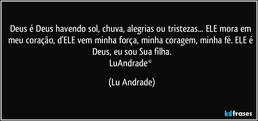 Deus é Deus havendo sol, chuva, alegrias ou tristezas... ELE mora em meu coração, d'ELE vem minha força, minha coragem, minha fé. ELE é Deus, eu sou Sua filha.