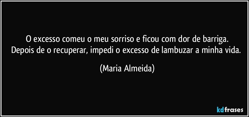 O excesso comeu o meu sorriso e ficou com dor de barriga.