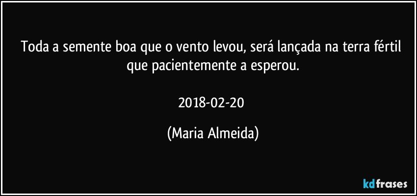 Toda a semente boa que o vento levou, será lançada na terra fértil que pacientemente a esperou.