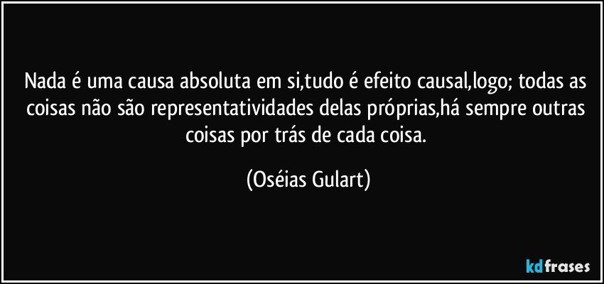 Nada é uma causa absoluta em si,tudo é efeito causal,logo; todas as coisas não são representatividades delas próprias,há sempre outras coisas por trás de cada coisa.