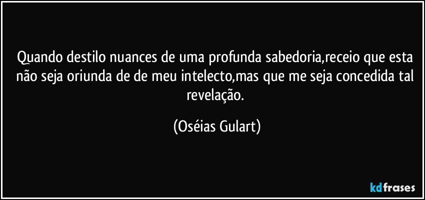 Quando destilo nuances de uma profunda sabedoria,receio que esta não seja oriunda de de meu intelecto,mas que me seja concedida tal revelação.