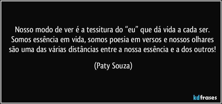 Nosso modo de ver é a tessitura do “eu” que dá vida a cada ser. Somos essência em vida, somos poesia em versos e nossos olhares são uma das várias distâncias entre a nossa essência e a dos outros!