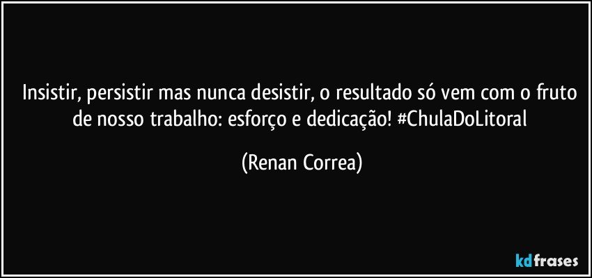 Insistir, persistir mas nunca desistir, o resultado só vem com o fruto de nosso trabalho: esforço e dedicação! #ChulaDoLitoral