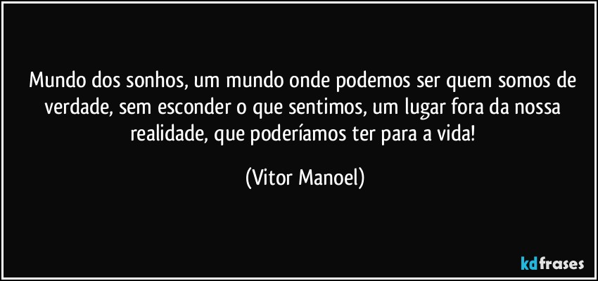 Mundo dos sonhos, um mundo onde podemos ser quem somos de verdade, sem esconder o que sentimos, um lugar fora da nossa realidade, que poderíamos ter para a vida!