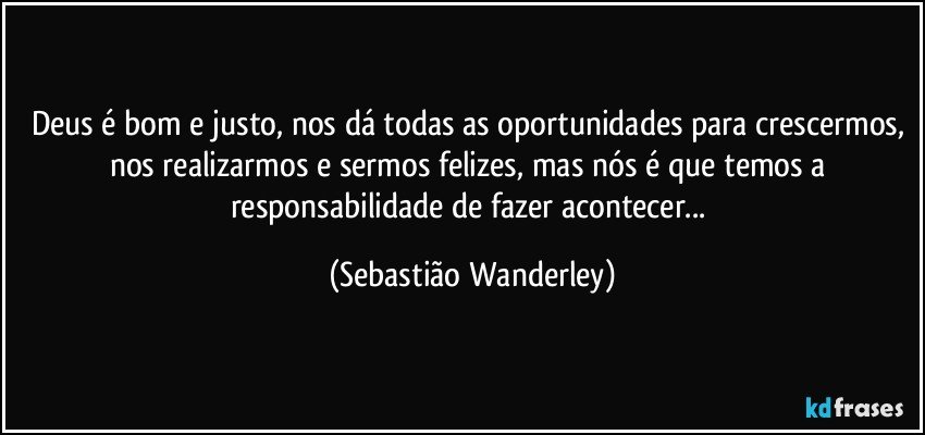 Deus é bom e justo, nos dá todas as oportunidades para crescermos, nos realizarmos e sermos felizes, mas nós é que temos a responsabilidade de fazer acontecer... (Sebastião Wanderley)