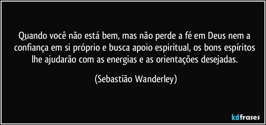 Quando você não está bem, mas não perde a fé em Deus nem a confiança em si próprio e busca apoio espiritual, os bons espíritos lhe ajudarão com as energias e as orientações desejadas. (Sebastião Wanderley)