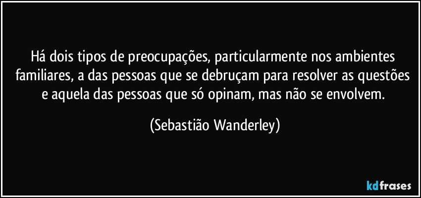 Há dois tipos de preocupações, particularmente nos ambientes familiares, a das pessoas que se debruçam para resolver as questões e aquela das pessoas que só opinam, mas não se envolvem. (Sebastião Wanderley)