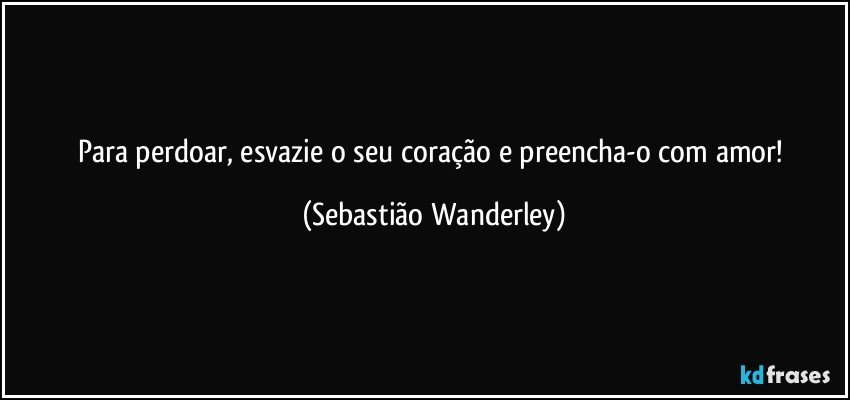 Para perdoar, esvazie o seu coração e preencha-o com amor! (Sebastião Wanderley)