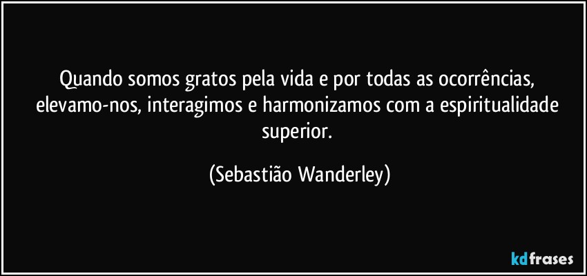 Quando somos gratos pela vida e por todas as ocorrências, elevamo-nos, interagimos e harmonizamos com a espiritualidade superior. (Sebastião Wanderley)