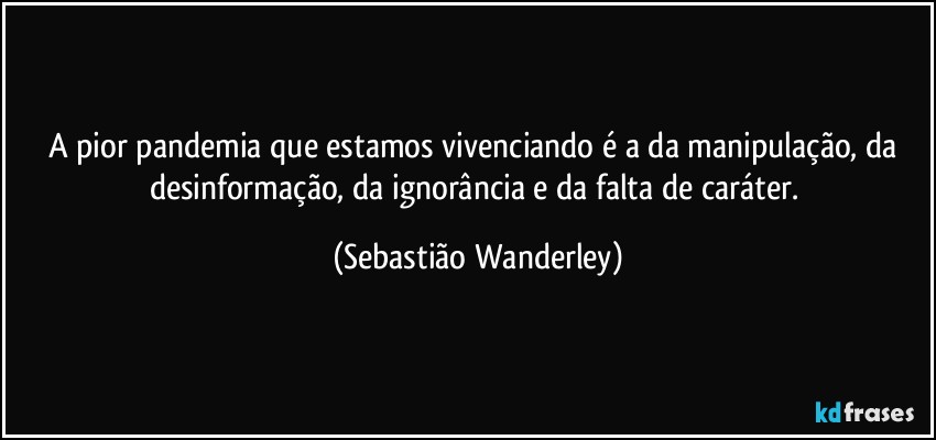 A pior pandemia que estamos vivenciando é a da manipulação, da desinformação, da ignorância e da falta de caráter. (Sebastião Wanderley)
