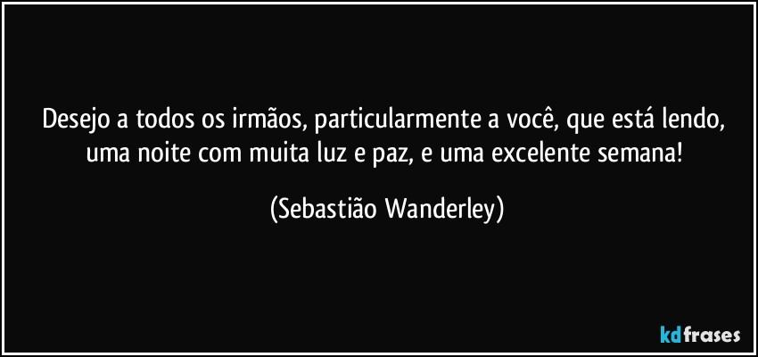 Desejo a todos os irmãos, particularmente a você, que está lendo, uma noite com muita luz e paz, e uma excelente semana! (Sebastião Wanderley)