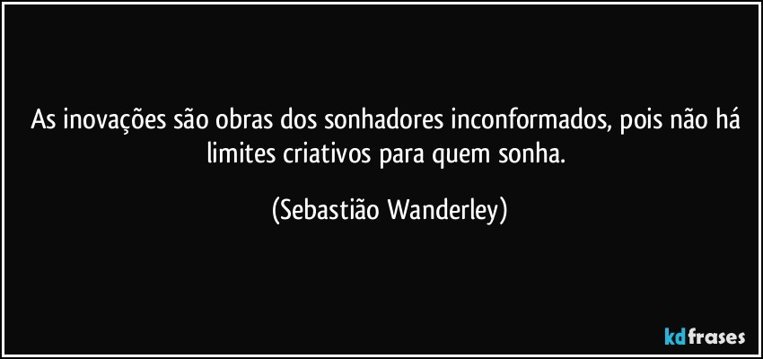 As inovações são obras dos sonhadores inconformados, pois não há limites criativos para quem sonha. (Sebastião Wanderley)