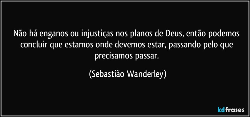 Não há enganos ou injustiças nos planos de Deus, então podemos concluir que estamos onde devemos estar, passando pelo que precisamos passar. (Sebastião Wanderley)