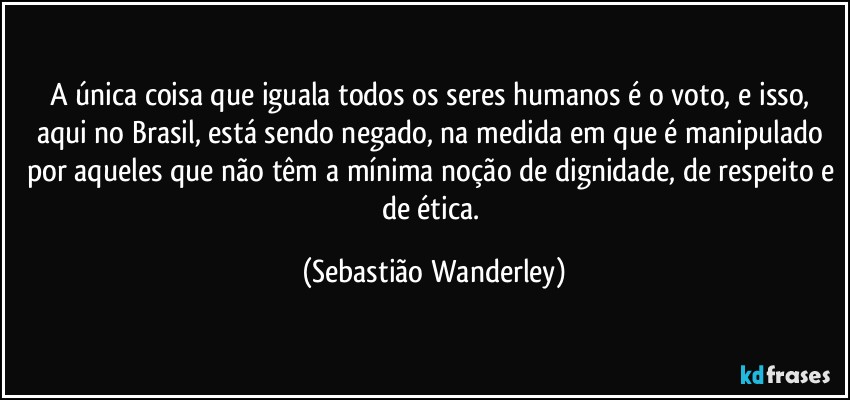 A única coisa que iguala todos os seres humanos é o voto, e isso, aqui no Brasil, está sendo negado, na medida em que é manipulado por aqueles que não têm a mínima noção de dignidade, de respeito e de ética. (Sebastião Wanderley)