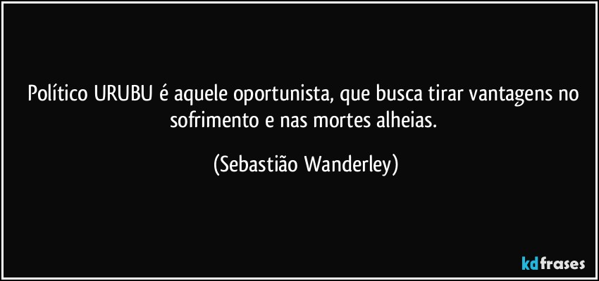 Político URUBU é aquele oportunista, que busca tirar vantagens no sofrimento e nas mortes alheias. (Sebastião Wanderley)