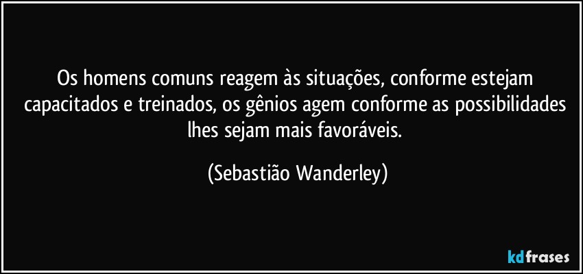 Os homens comuns reagem às situações, conforme estejam capacitados e treinados, os gênios agem conforme as possibilidades lhes sejam mais favoráveis. (Sebastião Wanderley)