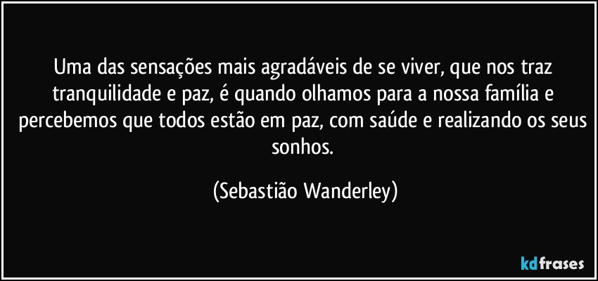 Uma das sensações mais agradáveis de se viver, que nos traz tranquilidade e paz, é quando olhamos para a nossa família e percebemos que todos estão em paz, com saúde e realizando os seus sonhos. (Sebastião Wanderley)