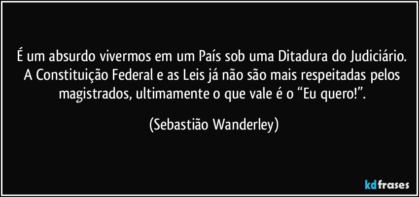 A Constituição Federal e as Leis já não são mais respeitadas pelos magistrados, ultimamente o que vale é o “Eu quero!”. (Sebastião Wanderley)