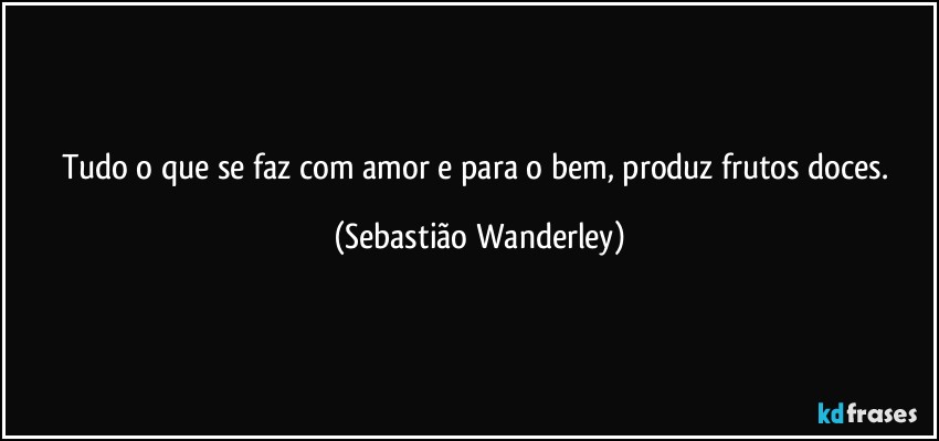 Tudo o que se faz com amor e para o bem, produz frutos doces. (Sebastião Wanderley)