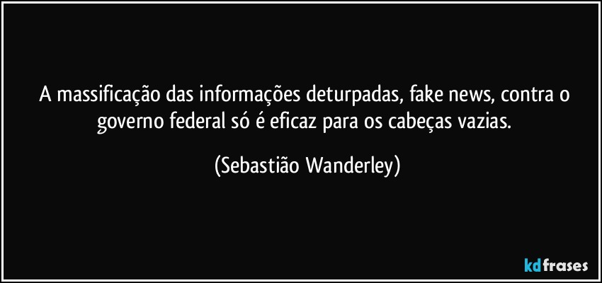 A massificação das informações deturpadas, fake news, contra o governo federal só é eficaz para os cabeças vazias. (Sebastião Wanderley)