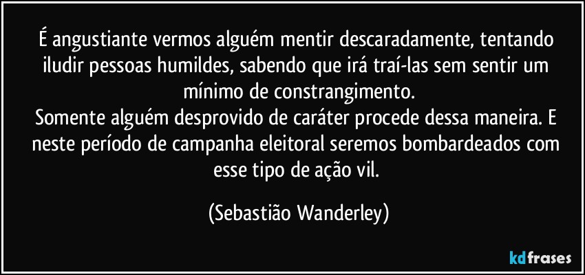 É angustiante vermos alguém mentir descaradamente, tentando iludir pessoas humildes, sabendo que irá traí-las sem sentir um mínimo de constrangimento.