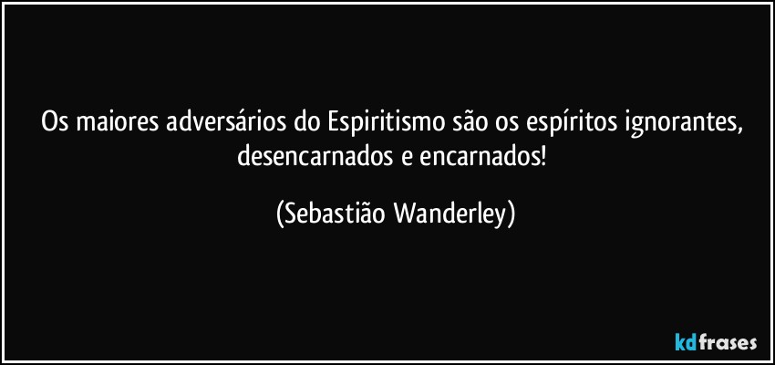 Os maiores adversários do Espiritismo são os espíritos ignorantes, desencarnados e encarnados! (Sebastião Wanderley)