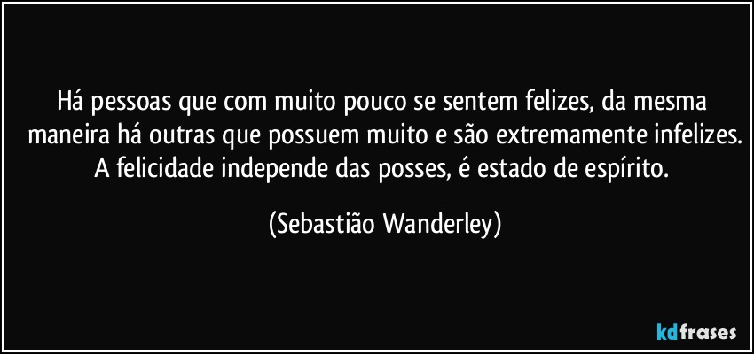 A felicidade independe das posses, é estado de espírito. (Sebastião Wanderley)
