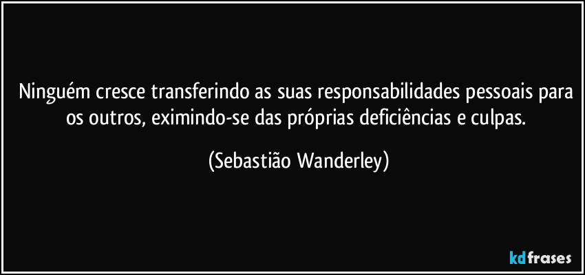 Ninguém cresce transferindo as suas responsabilidades pessoais para os outros, eximindo-se das próprias deficiências e culpas. (Sebastião Wanderley)