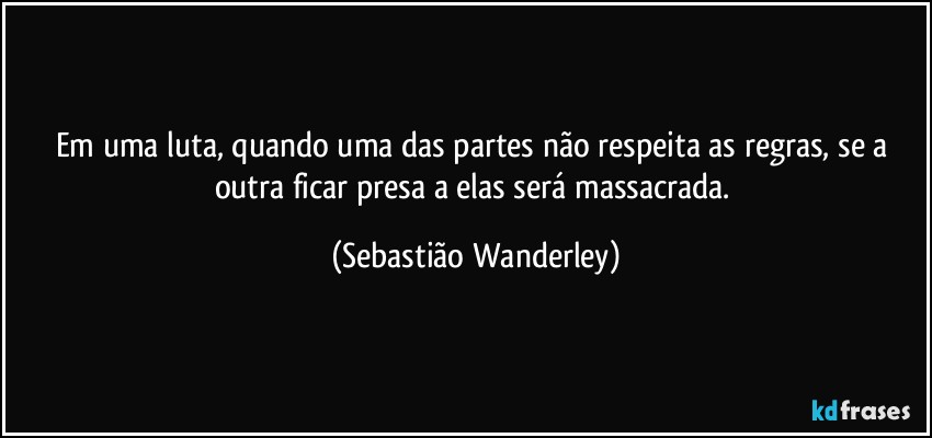 Em uma luta, quando uma das partes não respeita as regras, se a outra ficar presa a elas será massacrada. (Sebastião Wanderley)