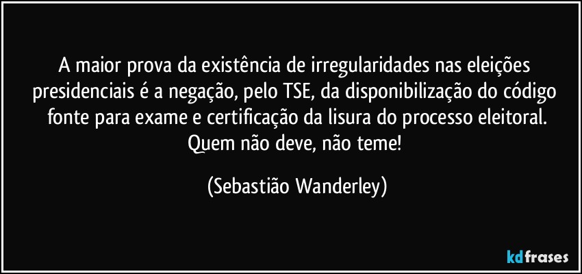 A maior prova da existência de irregularidades nas eleições presidenciais é a negação, pelo TSE, da disponibilização do código fonte para exame e certificação da lisura do processo eleitoral.