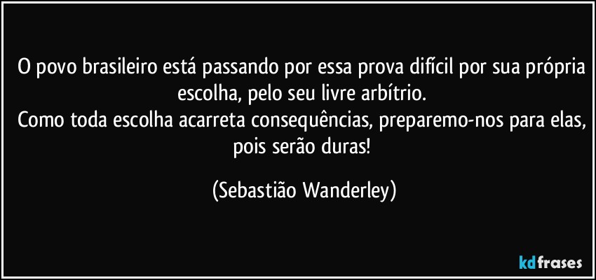Como toda escolha acarreta consequências, preparemo-nos para elas, pois serão duras! (Sebastião Wanderley)