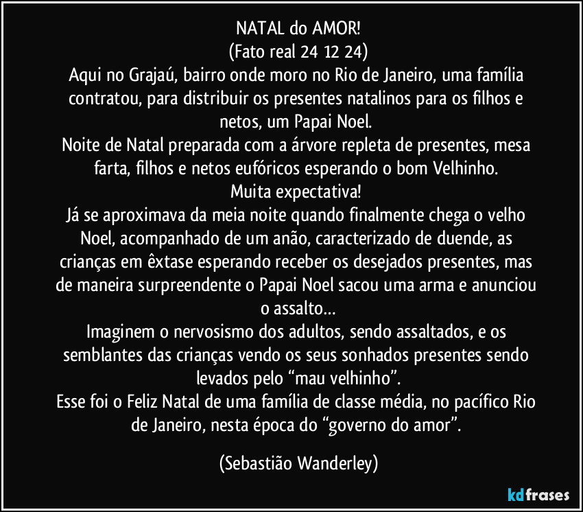 Imaginem o nervosismo dos adultos, sendo assaltados, e os semblantes das crianças vendo os seus sonhados presentes sendo levados pelo “mau velhinho”.
